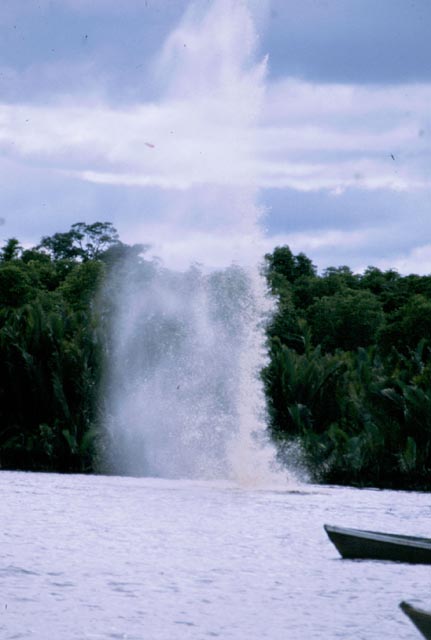 Shooting across the Belait River. Jim Plaice and Dave Jones (Bird-dog) site-seeing.