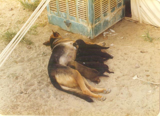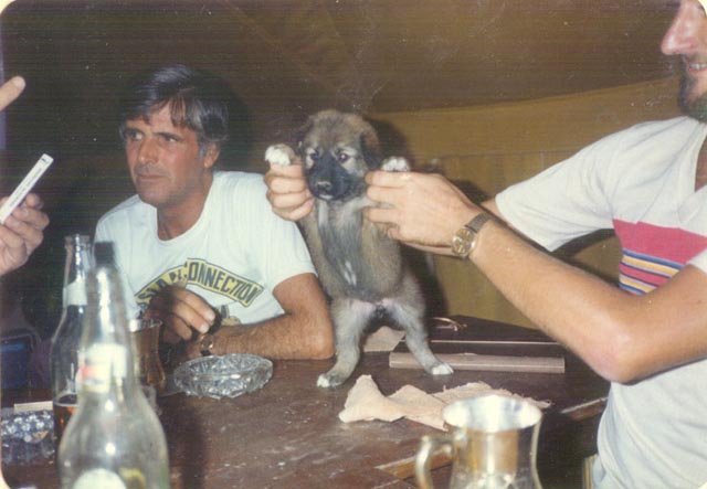 We had a dog. These first puppies were born under my bed in the early hours of one morning. An odd experience. The picture above is of Bert Baverstock with the one puppy that we kept.